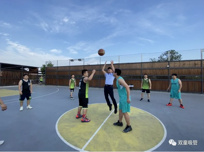 本次籃球友誼賽由“雙童”董事長(cháng)樓仲平進(jìn)行開(kāi)場(chǎng)。隨著(zhù)一聲清脆的哨響,樓總將籃球高高拋起,瞬間點(diǎn)燃了本次籃球賽眾員的激情。