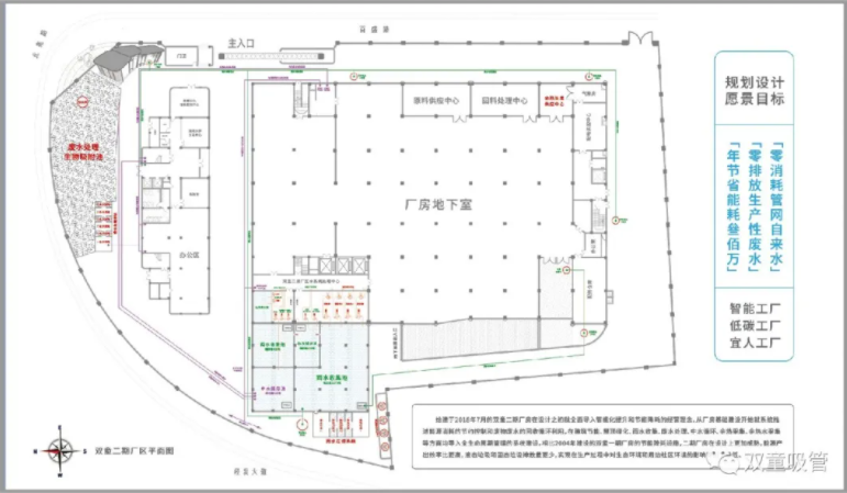 2020年年初,“雙童”二期新廠(chǎng)房投入使用,廢水收集中水回用系統在原來(lái)“雙童”一期廠(chǎng)房的基礎上進(jìn)行了大量的優(yōu)化和提升,讓員工日常生活中所產(chǎn)生的廢水不僅得到循環(huán)利用,而且還消滅了企業(yè)的廢水排放和污染,同時(shí)還為企業(yè)節省了大量水費支出! “雙童”二期新廠(chǎng)區:廢水收集中水處理原理圖 “雙童”二期新廠(chǎng)區節能降耗設計圖