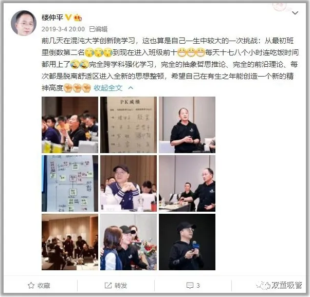 許多了解“雙童”樓仲平的人都知道:樓仲平只有小學(xué)文化,他是憑借后天的超強學(xué)習力,不斷地學(xué)習,不斷地進(jìn)行自我迭代。一路堅持,走到今天,這背后離不開(kāi)的是樓仲平一直以來(lái)的學(xué)習力和進(jìn)取心。樓仲平看過(guò)的書(shū)滿(mǎn)滿(mǎn)的閱讀痕跡下面,吸管妞就和大家分享一下樓仲平的逆襲成長(cháng)之路吧!1998年,創(chuàng )業(yè)四年后的樓仲平完成了財富和創(chuàng )業(yè)經(jīng)驗的原始積累,不用再為衣食而憂(yōu),但停不下來(lái)的樓仲平深刻意識到:雖然自己已經(jīng)積累了豐富的實(shí)踐經(jīng)驗,但如果希望企業(yè)能夠長(cháng)遠發(fā)展,作為領(lǐng)頭人的他就需要對自己的知識積累進(jìn)行重構。過(guò)于草根的樓仲平經(jīng)歷了人生的N次失敗于是1998年,樓仲平報名參加了當時(shí)杭州大學(xué)義烏分部舉辦的廠(chǎng)長(cháng)經(jīng)理人研修班。在這三年共五個(gè)學(xué)期的學(xué)習過(guò)程中,樓仲平沉下心來(lái),拿起書(shū)本,潛心學(xué)習,積累了不少管理理念和管理知識。幾年的系統學(xué)習,徹底重塑了他的知識體系,完善了他的理論認知架構。而在畢業(yè)之時(shí),杭州大學(xué)與浙江大學(xué)兼并,樓仲平拿到了浙江大學(xué)的學(xué)歷文憑,成為了浙大的校友。樓仲平在浙江大學(xué)公共管理學(xué)院上課在這“二次知識重構”期間,樓仲平逐漸意識到自己需要脫離原來(lái)圈子,努力向知識界和學(xué)術(shù)界靠攏,從而獲得經(jīng)驗之外的知識,看到感官之外的原理和邏輯,才能讓這根世界上最難做的吸管得以有尊嚴的生存和發(fā)展!樓仲平利用碎片化時(shí)間的自學(xué)旅途