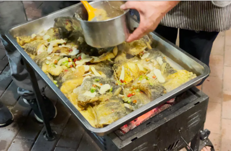 除了烤魚(yú),還有餐桌上的重頭戲——烤全羊、酒糟燉雞湯還有紅燒甲魚(yú),每一樣都超大份量,讓大家吃得滿(mǎn)意