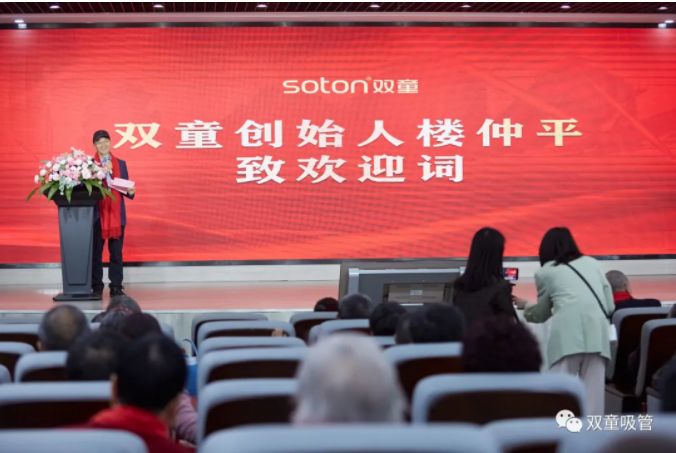 參觀(guān)完廠(chǎng)區,家人們一起來(lái)到大會(huì )堂,樓仲平為大家致歡迎詞。他深情地對村里的長(cháng)輩家人表示感謝:
