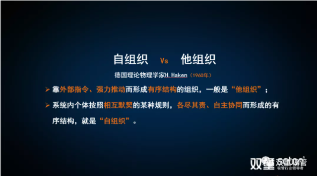 所謂的“自組織”就是自然界當中自然存在的組織形態(tài),是基于動(dòng)物性本能、血緣化而凝聚的雙層結構的組織形態(tài),是廣泛存在于自然界當中的自然組織形態(tài)。