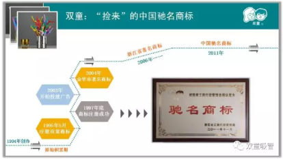 正是因為這次偶然的機遇,樓仲平“撿來(lái)”了中國馳名商標,讓“雙童”邁出了企業(yè)的品牌建設發(fā)展最為關(guān)鍵的一步!