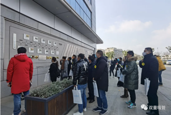 來(lái)參觀(guān)的客人,在“雙童”文化墻前駐足