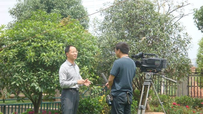 上圖:董事長(cháng)樓仲平就節約國土資源接受《厚土》欄目組記者采訪(fǎng)