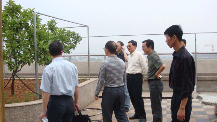 上圖:張瑞基一行參觀(guān)考察公司屋頂花園