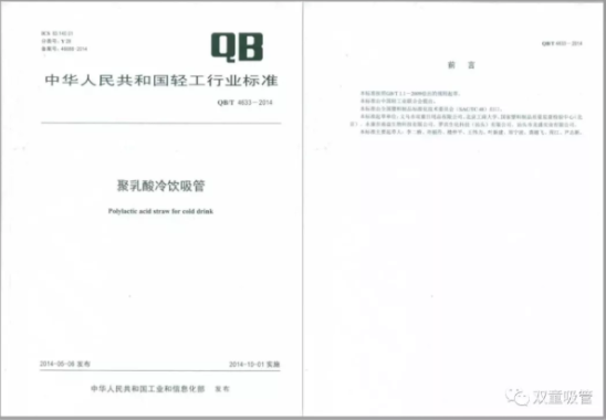 2014年由雙童獨家主導起草的輕工行業(yè)標準Q/BT4633-2014《聚乳酸冷飲吸管》審核通過(guò),并于同年10月1日正式實(shí)施。