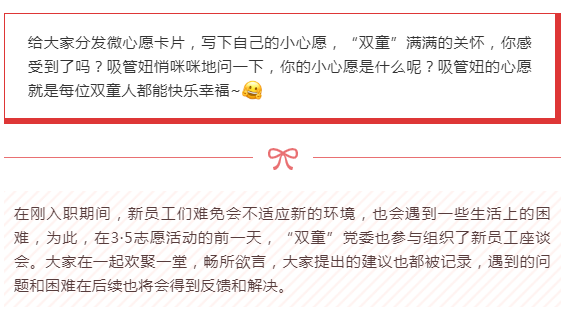 大家寫(xiě)下的心愿卡和建議都已被查收,吸管妞希望大家以后遇到什么困難都可以積極反饋,“雙童”會(huì )盡力去解決每一件事,讓大家感受到“家”的溫暖~