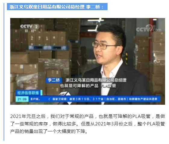 2021年元旦之后,我們對于常規的產(chǎn)品,也就是可降解的PLA吸管,是做了一些常規的庫存,做得比較多。但是從2021年3月份之后,整個(gè)PLA吸管產(chǎn)品的銷(xiāo)量出現了一個(gè)大幅度的下降。