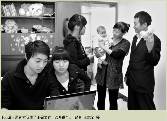 房間里,一家人都在。兒子和女兒在看電腦,妻子和兒媳在逗芯芯玩。王召文上前“搶”過(guò)孫女,親親她的臉頰,喚著(zhù)她的小名,逗得小家伙咧開(kāi)嘴直笑。