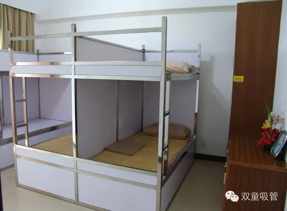 在“雙童”員工宿舍樓,每個(gè)宿舍都配置了衣柜、棉被柜、鞋柜、抽屜,各類(lèi)家具一應俱全?!拔覀兪遣捎镁频晔焦芾硭奚岬?,員工使用的工作服、床單、床套、枕頭、毛巾、茶杯、洗手液等,都是免費提供的?!惫疽还芾砣藛T說(shuō)。