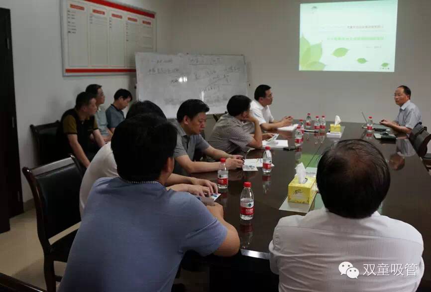 在交流過(guò)程中,領(lǐng)導們提出要詳細聽(tīng)聽(tīng)我們雙童的節能降耗工作。當家人直接把領(lǐng)導們請到了我們的會(huì )議室,用PPT講解的形式向領(lǐng)導們說(shuō)明了我們的各個(gè)節能降耗系統的工作原理以及產(chǎn)生的社會(huì )效益。