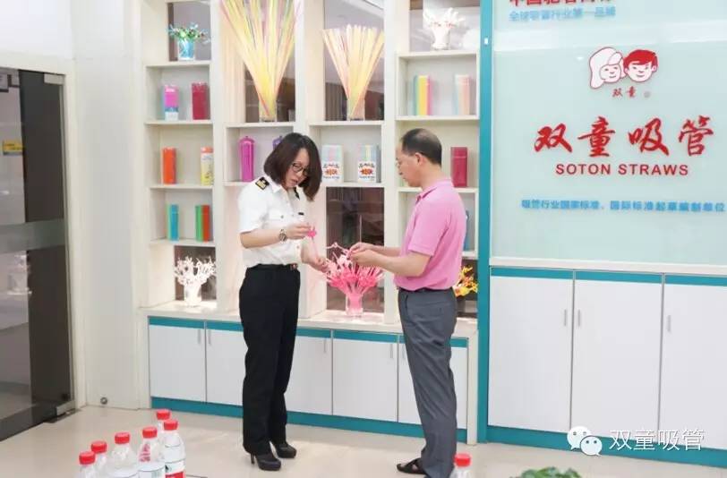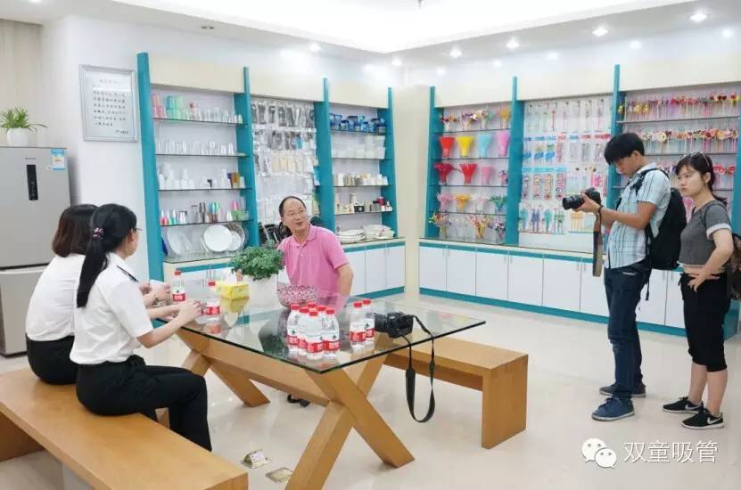 首先第一站就是我們的樣品房。樓總詳細的向客人介紹了雙童近年來(lái)產(chǎn)品轉型升級的一些代表產(chǎn)品,如愛(ài)心吸管、哈哈吸管等。在看到賦予了更多使用功能與感情色彩的創(chuàng )新吸管產(chǎn)品之后,客人們也都是紛紛稱(chēng)贊,驚嘆之心溢于言表!