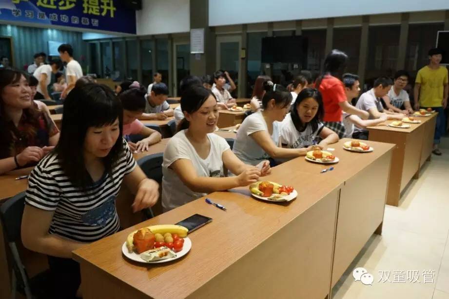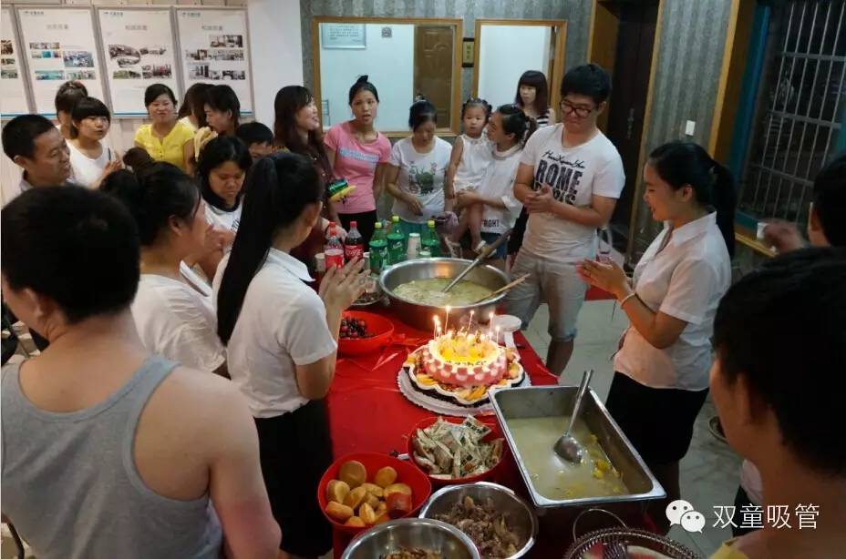 晚上七點(diǎn),雙童七月份的壽星們都團聚在九樓閣啦!四五十位的壽星們在享用了公司為他們準備的美味長(cháng)壽面和玉米排骨湯后,像小學(xué)生似的齊刷刷坐在了座位上,等待一場(chǎng)盛會(huì )的來(lái)臨!