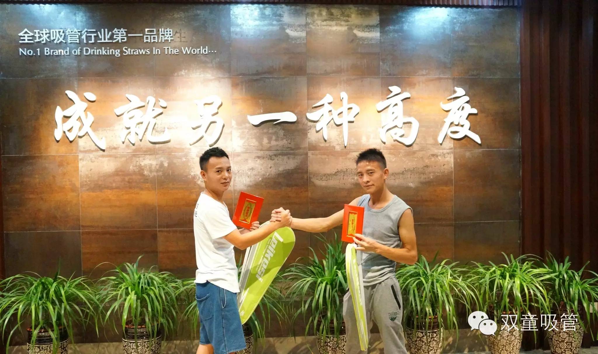 沒(méi)有專(zhuān)業(yè)場(chǎng)地,但我們有吸管;沒(méi)有專(zhuān)業(yè)場(chǎng)地,但我們有吸管。我們特地采用車(chē)間的長(cháng)吸管廢料粘成彩色的場(chǎng)地邊線(xiàn),用吸管廢料和膠帶粘成吸管球網(wǎng)。就這樣,我們因地制宜,就地取材,在行政樓前創(chuàng )造了一個(gè)羽毛球的吸管場(chǎng)地,社員們都覺(jué)得咱們確實(shí)是雙童的人吶,如此熱愛(ài)吸管。
