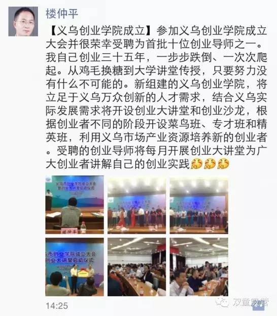 當家人樓總也有感于義烏創(chuàng )業(yè)學(xué)院成立之時(shí)在朋友圈發(fā)表了自己的感言: