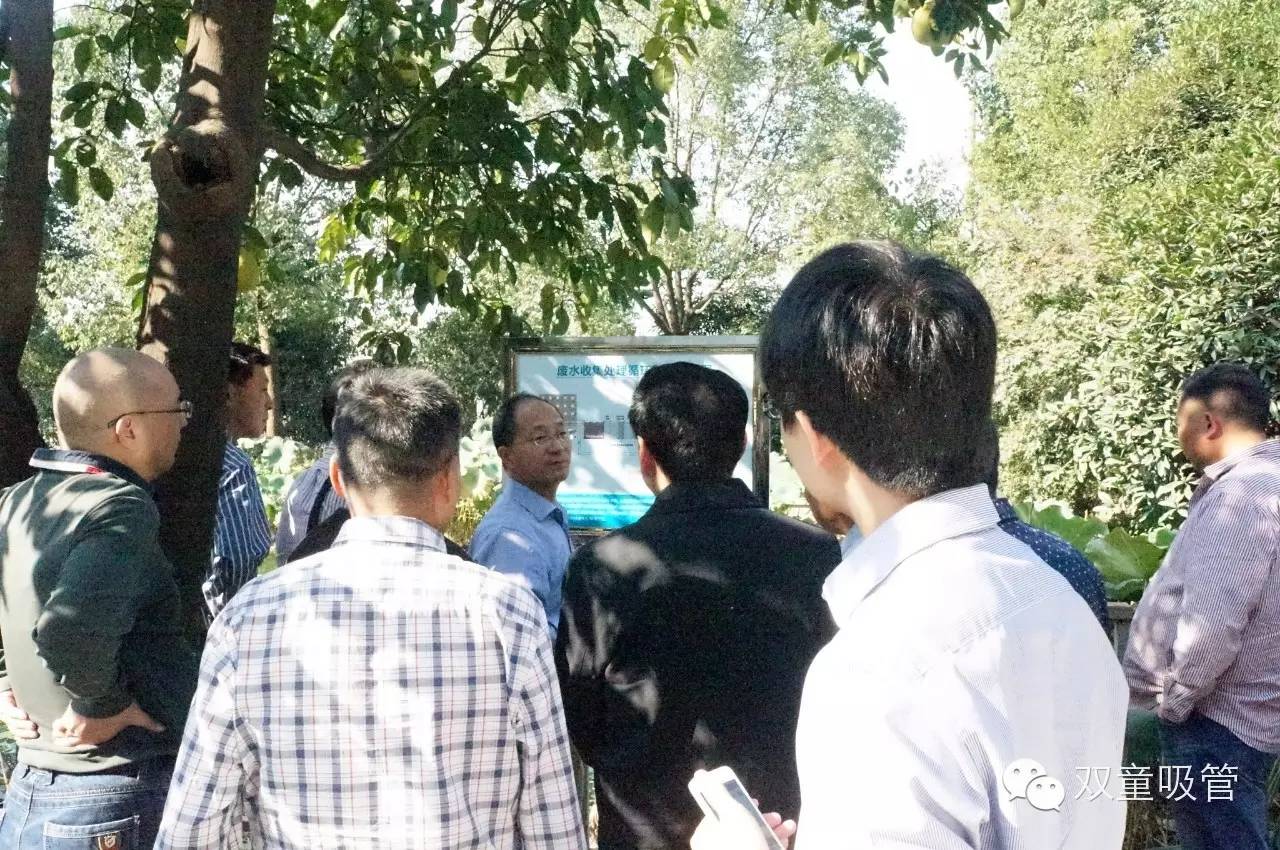 民企聯(lián)合會(huì )的一行眾人,由于人數眾多,分別由樓總和李總帶領(lǐng)兩支隊伍參觀(guān)我們的雙童,參觀(guān)時(shí)好不熱鬧!首先來(lái)到了我們的中水回收池塘這個(gè)雙童的“著(zhù)名景點(diǎn)”,樓總給眾人講解了我們雙童的廢水循環(huán)利用的系統和原理,眾人對雙童關(guān)于綠色環(huán)保的做法給予了極大的肯定!