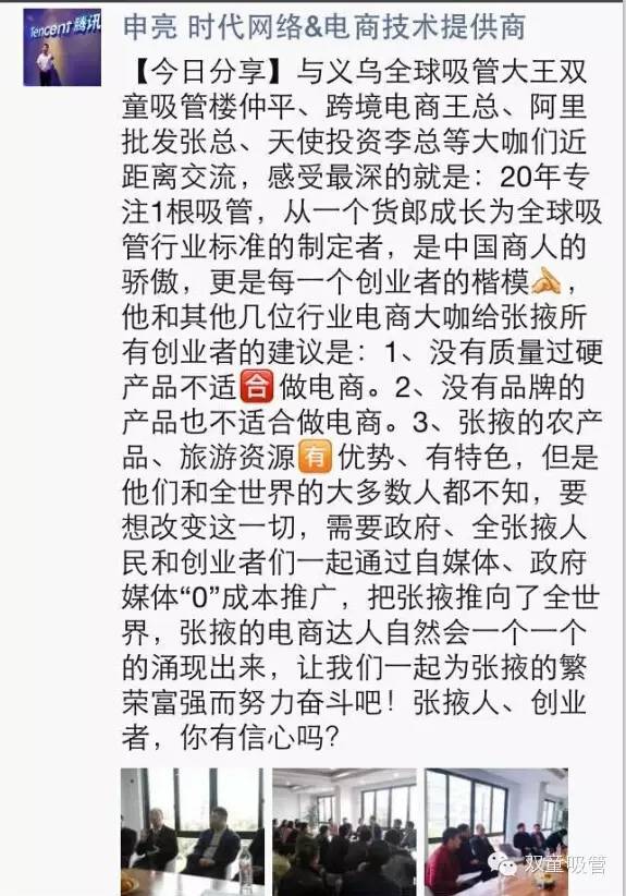 就在26日下午,在青巖劉網(wǎng)上服務(wù)中心的三樓,義烏共濟創(chuàng )客空間舉辦了一場(chǎng)主題為“移動(dòng)互聯(lián)網(wǎng)時(shí)代的創(chuàng )新與發(fā)展”小型分享沙龍,不大的會(huì )場(chǎng)被張掖市的百余名電商精英擠得滿(mǎn)滿(mǎn)當當,人氣非常旺。我們的當家人樓總也一早被請到會(huì )場(chǎng),擔當此次沙龍的分享嘉賓之一,和各位精英們分享他的經(jīng)營(yíng)心得和對電商發(fā)展的看法。吸管妞非常遺憾地沒(méi)有參加此次盛會(huì ),不過(guò)看到參會(huì )精英們分享的朋友圈,就知道當家人樓總的分享又觸動(dòng)了不少人啦!