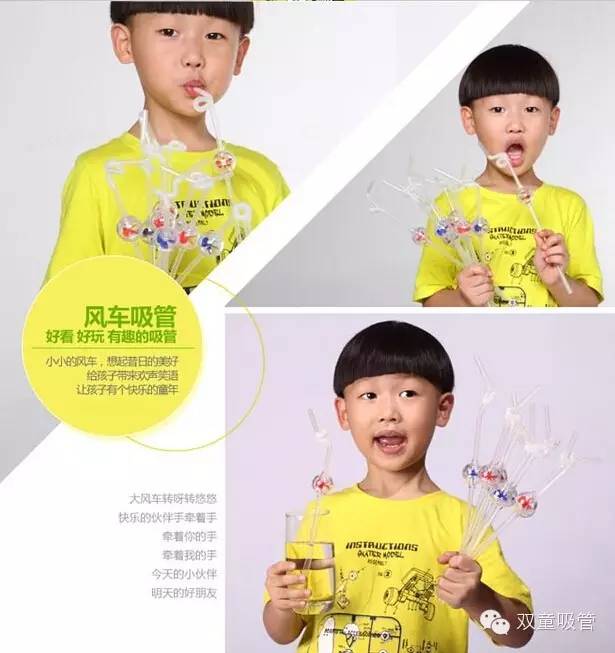 來(lái)看看這樣一支吸管:吸管的中上部,安裝著(zhù)一個(gè)透明的球體,球體內懸著(zhù)一只小小的風(fēng)車(chē),吮吸飲料,里面的風(fēng)車(chē)就會(huì )快速旋轉?!半p童吸管”總經(jīng)理李二橋說(shuō),這款產(chǎn)品叫做“風(fēng)車(chē)吸管”,剛開(kāi)發(fā)出來(lái)時(shí),由員工的子女進(jìn)行了試用,孩子們都把它們當成了玩具。顯然,這是一款十分具有個(gè)性特點(diǎn)的產(chǎn)品?!半p童吸管”類(lèi)似的創(chuàng )新產(chǎn)品有40多類(lèi),總計300多種。