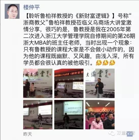 吸管妞感言:魯教授說(shuō),企業(yè)家是國家經(jīng)濟的脊梁,中國實(shí)在太需要一大批企業(yè)家了。當今中國,企業(yè)如雨后春筍,但真正具備企業(yè)家素質(zhì)的人才奇缺。希望經(jīng)過(guò)魯教授的授課后,我們義烏的老板們能夠真正的有所思,有所悟,認真專(zhuān)注地做企業(yè),為建設美好的義烏貢獻更大的力量!