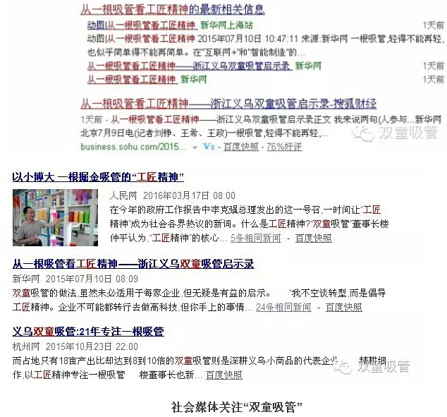 確實(shí),近兩年,“雙童吸管”不斷地被新華社、人民網(wǎng)等各大媒體作為“工匠精神”的代表企業(yè)推到臺前,我們也深受鼓舞,就像當家人樓總所說(shuō),我們一定要把產(chǎn)品做成“精品”,企業(yè)才有將來(lái)!下面,就請大家和吸管妞一起來(lái)看看這一篇精彩的文章吧!