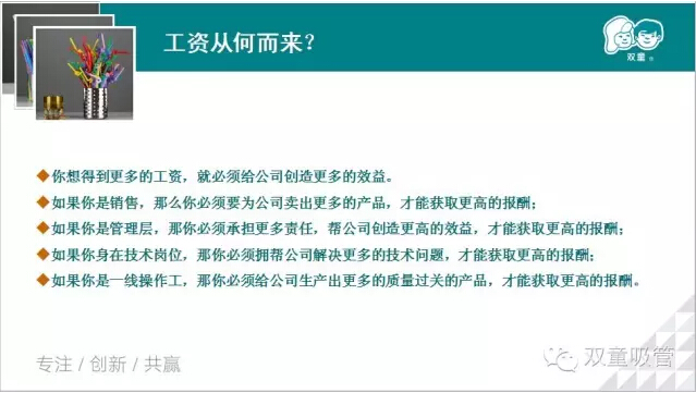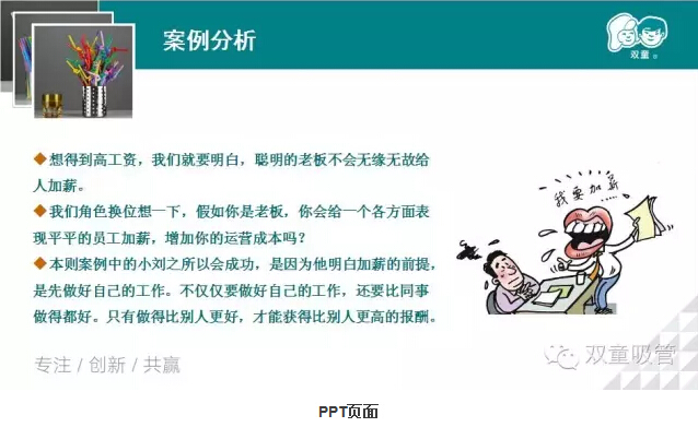 在學(xué)習會(huì )上,吸管妞也和童鞋們分享大膽地追求自己的工資。追求高工資沒(méi)什么不對,相反,這是一種向往理想和幸福生活的表現。所以,無(wú)論是迫于生活所需,還是出于自己對物質(zhì)生活的要求,渴望高工資并不是什么虛榮心理,所以并不需要遮遮掩掩。