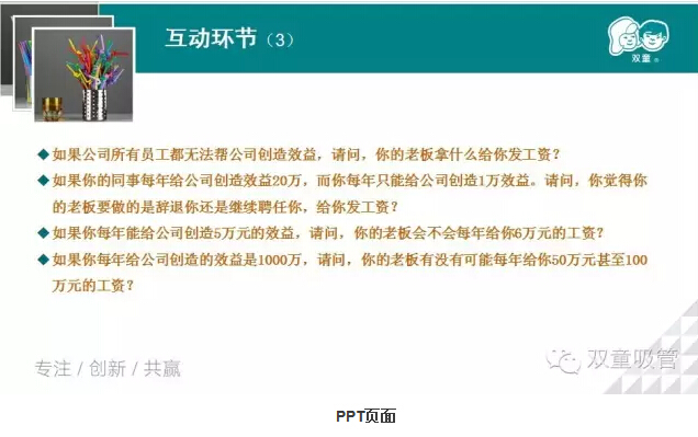這次的學(xué)習會(huì ),吸管妞變身講師,和大家聊聊《誰(shuí)給你發(fā)工資》。這不,一開(kāi)場(chǎng),吸管妞就和大家互動(dòng)了起來(lái),是誰(shuí)給你發(fā)工資呢?