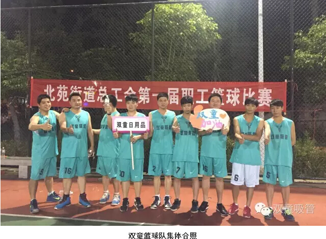 經(jīng)過(guò)一個(gè)半小時(shí)的激烈比拼后,“雙童”以79:74的比分險勝“寶娜斯”。瞧把我們“雙童”籃球健將們高興的,拍個(gè)合照還要擺個(gè)“大拇哥”臭美一下!哈哈!接下來(lái)的籃球賽安排中,“雙童”還將在下周迎戰“永達不銹鋼”,小伙子們,看你們的了!