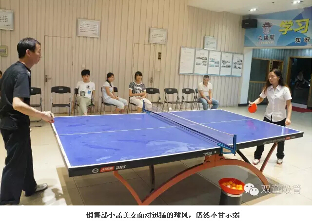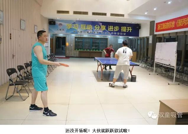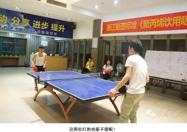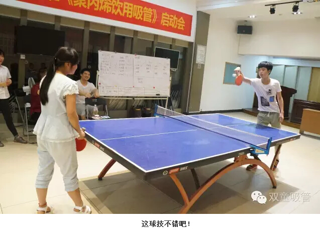 精彩的小游戲后,比賽現場(chǎng)火熱極了。瞧!正手小三角、反手加轉弧球、反手前沖弧球、挑打、搓球,一系列乒乓球技藝中的手上花活兒,在乒乓球比賽中,都可得見(jiàn)蹤影!在場(chǎng)的觀(guān)眾們連連叫好!咱們“雙童”吸管的員工們真是臥虎藏龍??!不愧是中國的國球,這普及率當真是全民的!