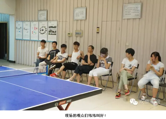 5月27日晚七點(diǎn)半,一場(chǎng)精彩的乒乓球賽在“雙童”九樓閣舉行!為了不受外面風(fēng)力的阻擾,男同胞們就把球桌搬到了室內,一下就占據了九樓閣的的正中心,成為全場(chǎng)的焦點(diǎn)。這不,還沒(méi)開(kāi)始呢!乒乓球迷們就忍不住先練練手啦!下面吸管妞就帶大家看看現場(chǎng)的盛況吧!