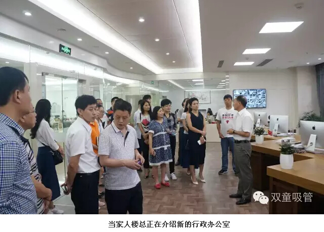 一到“雙童”,大家就參觀(guān)起了行政辦公室和吸管樣品房,當家人樓總介紹了一系列他們從沒(méi)見(jiàn)過(guò)的創(chuàng )新吸管,讓他們驚訝的是,原來(lái)一根小小的吸管也可以有這么多的功能可以開(kāi)發(fā)。