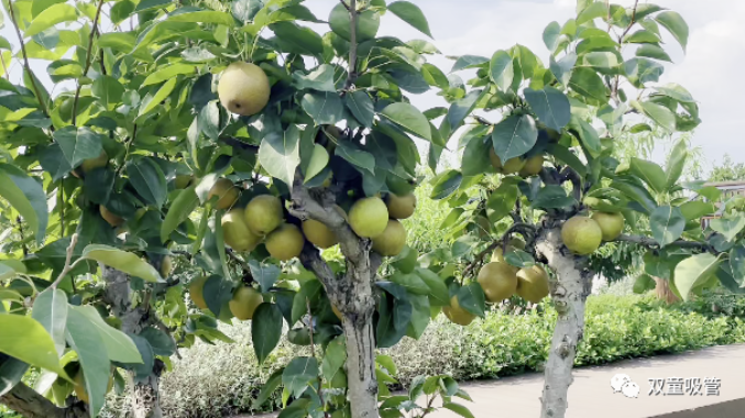 在“雙童”新廠(chǎng)區5000平米的“空中果園”里,200多棵的果樹(shù)正在瘋狂成長(cháng),漸漸開(kāi)始結果啦!看這邊的梨樹(shù)林,春天時(shí)梨花開(kāi)滿(mǎn)了枝丫,果不其然現在就已經(jīng)果實(shí)累累,每棵樹(shù)都結了好幾十顆梨子!
