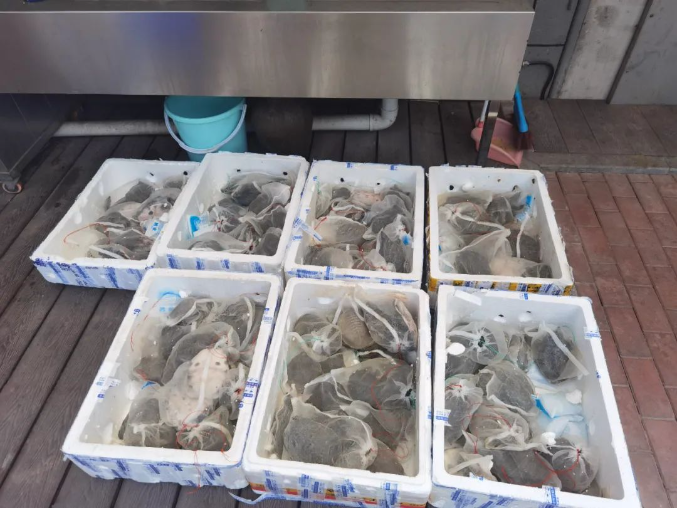 抓住他們真是費了不少勁!在經(jīng)過(guò)后勤小姐姐們的細心消毒后,終于可以投放啦,看著(zhù)一袋又一袋塑料網(wǎng)被解開(kāi),小甲魚(yú)們紛紛扎入池塘當中。吸管妞已經(jīng)默默期盼著(zhù)來(lái)年收獲一大堆甲魚(yú)蛋啦~~