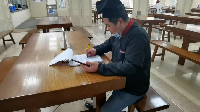 食堂師傅正在對驗收回來(lái)的菜品進(jìn)行登記