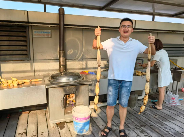 這么多蓮藕怎么處理呢?當然是分享給員工們啦!在“雙童”有不少小伙伴們都是以家庭為單位在這里生活,“雙童”也在家庭房中為大家配備了溫馨的現代化廚房。