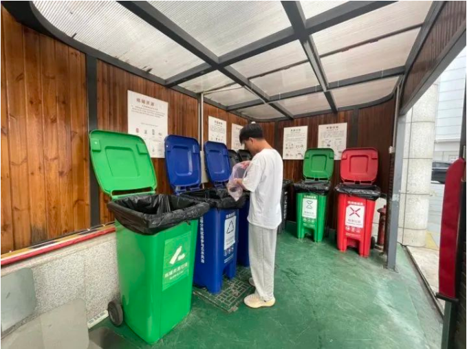 在“雙童”的垃圾投放房里各有紅綠藍黑等多個(gè)顏色的垃圾分類(lèi)桶,分別將廠(chǎng)區的生活垃圾分為了易腐垃圾、其他垃圾、可回收物、有害垃圾四大類(lèi)。