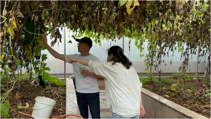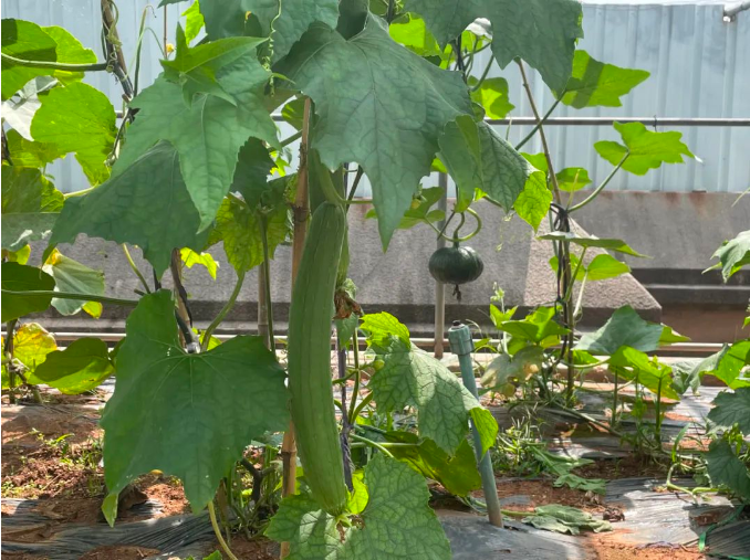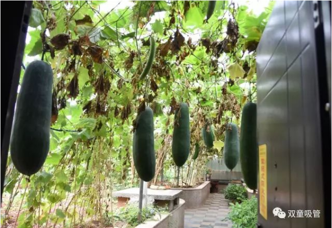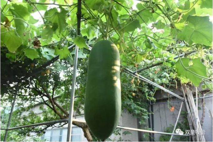 秋季不愧是收獲的季節,在園丁叔叔的辛勤栽培下,空中菜園現在可謂是處處都是寶!看,這一大片的冬瓜像是通關(guān)游戲里的木樁似的,想過(guò)去這條路可還真的不容易。這細細的莖條還能掛住這么大的冬瓜,太牛了!