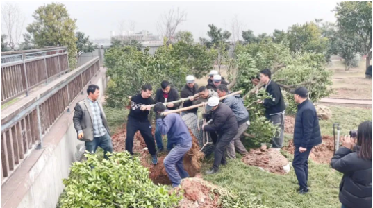 其實(shí)啊,主要是因為購買(mǎi)的果樹(shù)都是重量級“嘉賓”,所以“雙童”都是通過(guò)大吊機將這些果樹(shù)運送上空中生態(tài)園的!我們的當家人樓總更是親自從旁指揮,護送大樹(shù)成功上樓!