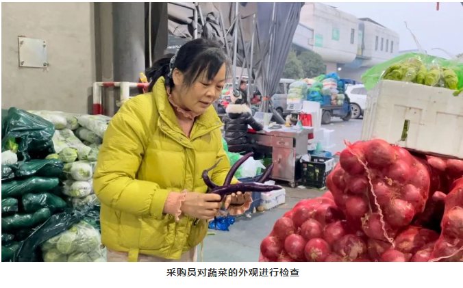 采購現場(chǎng),每一種菜品都要經(jīng)過(guò)采購員的嚴格檢查,不僅是要對品種進(jìn)行對比,選出最好吃的種類(lèi),還要考量菜品的質(zhì)量,外觀(guān)得要好看,不管是茄子還是土豆都要有“顏值”。