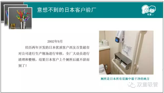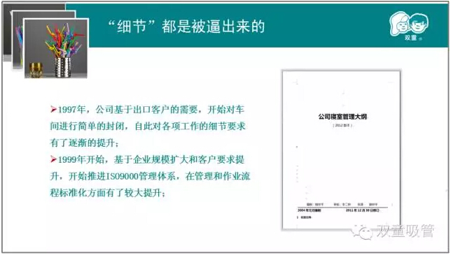第二章則是本次課程的重中之重。樓總結合我們“雙童”自身的真實(shí)案例,來(lái)說(shuō)明實(shí)施精細化管理對產(chǎn)品質(zhì)量的重要性!通過(guò)和日本客戶(hù)的合作,我們一次次地提升,一次次地逼著(zhù)自己做更高的要求和改變,以此來(lái)達到客戶(hù)的需求,更通過(guò)這些舉措,慢慢地改變我們自己的產(chǎn)品質(zhì)量和員工素質(zhì)。