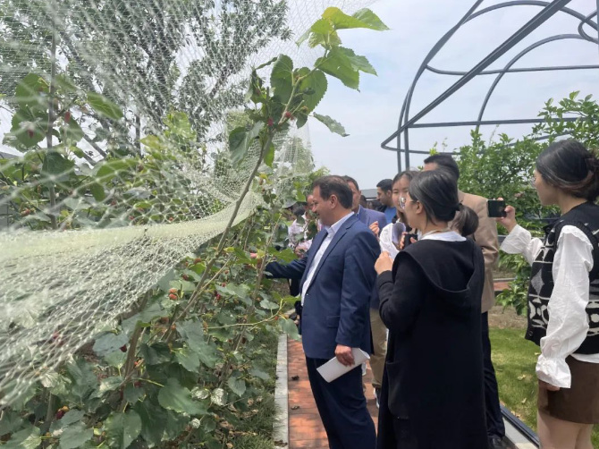 枝頭飽滿(mǎn)的桑葚成功引起了阿拉伯參訪(fǎng)團們的注意