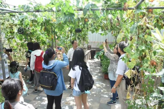 這樣的場(chǎng)景也總會(huì )吸引來(lái)“雙童”參觀(guān)的客人及媒體朋友們駐足觀(guān)賞,拍照留念,贊嘆屋頂菜園的瓜果!