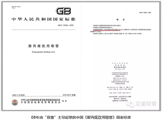 (1). 2008年7月,“雙童”提交了ISO《聚丙烯飲用吸管》國際標準的起草申請書(shū)