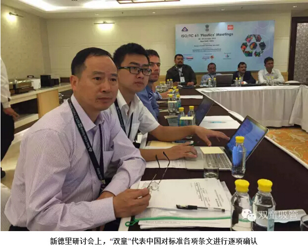 2015年10月6日,ISO TC61國際標準化組織年會(huì )在印度新德里召開(kāi),作為最后一次國際標準起草工作的定稿工作,“雙童”代表中國派出了強大的六人技術(shù)代表團。經(jīng)過(guò)幾天緊張的討論,“雙童”會(huì )同各參與主席國對《聚丙烯飲用吸管規范》送審稿的各項條文進(jìn)行最終的程序性確認,在參與各國代表一致同意下形成了《聚丙烯飲用吸管規范》ISO國際標準報批稿,提交給瑞士日內瓦的ISO國際標準化組織最終審定。