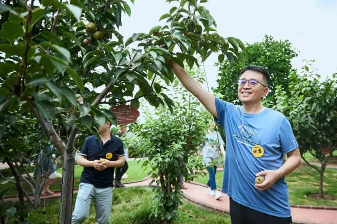 這是一個(gè)“長(cháng)”在屋頂約5000㎡的空中生態(tài)園,也是“雙童”的另一張名片!這里有100多種花卉和200多棵果樹(shù),現在正是梨子、棗子掛滿(mǎn)的季節!學(xué)員們也可以“閑逛”中體驗到采摘的樂(lè )趣。
