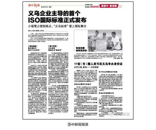 歷時(shí)九年,輾轉六國,由“雙童”主導并起草的《聚丙烯飲用吸管規范》ISO國際標準終于在瑞士日內瓦的ISO國際標準化組織向全球162個(gè)國家和地區正式發(fā)布!消息一出,引起了各大新聞媒體的關(guān)注。這不,浙中新報對此進(jìn)行了大版面報道,下面妞就帶大家來(lái)看看吧!
