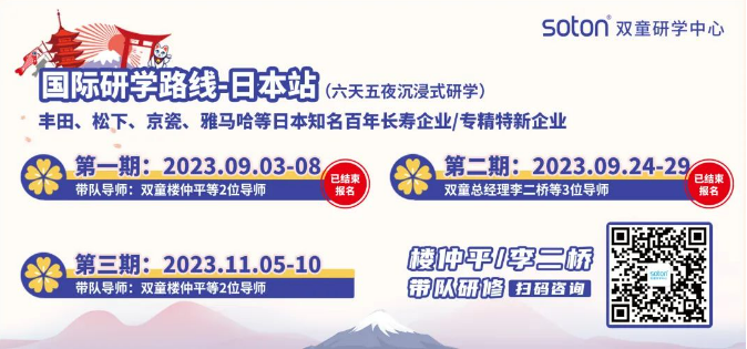 為了幫助更多學(xué)員企業(yè)也能從粗放經(jīng)營(yíng)轉向精益制造,雙童研學(xué)中心特意籌備了這條日本企業(yè)研學(xué)路線(xiàn),由樓總親自帶隊,與眾多企業(yè)家們一起,再一次深入實(shí)地探訪(fǎng)多家日本企業(yè)百年傳承與匠人精神!