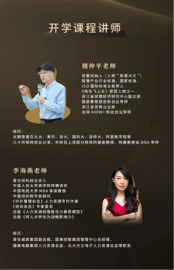 此次開(kāi)學(xué)課程,樓仲平老師將為大家帶來(lái)精心打磨的課程分享,并盛邀著(zhù)名管理學(xué)講師李海燕老師作為嘉賓老師,為來(lái)自各行各業(yè)的同學(xué)們賦能。
