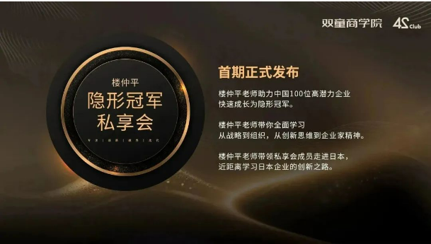 明年春季之后開(kāi)營(yíng)的第二期樓仲平·隱形冠軍私享會(huì ),將在10月份開(kāi)始正式招募。