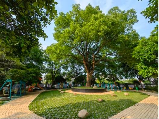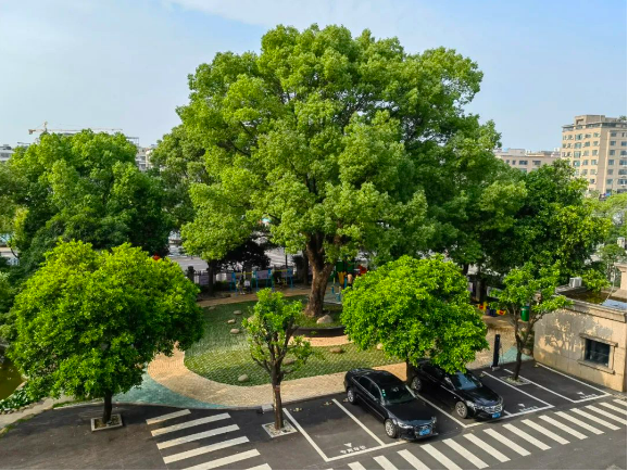 如今的“雙童1號樹(shù)”早已是枝繁葉茂,站在樹(shù)下,已經(jīng)很難再拍出它全部的樣貌了!當家人樓仲平還在這里建設了一個(gè)“1號樹(shù)小公園”,為大家提供了工作之余休閑放松的好去處。